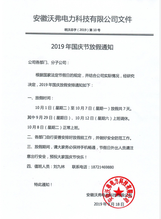 2019年国庆节放假通知