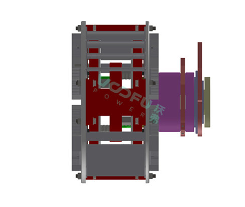 图1位永磁耦合器的驱动机械结构,有铜盘、永磁铁和永磁铁托盘组成,其中铜盘也可以为永磁铁。当转子带动永磁铁盘进行旋转,永磁铁转动在铜盘内产生涡流形成的磁场与永磁铁的磁场相反,因此当转子转动推动铜盘旋转,铜盘带动定子进行旋转。