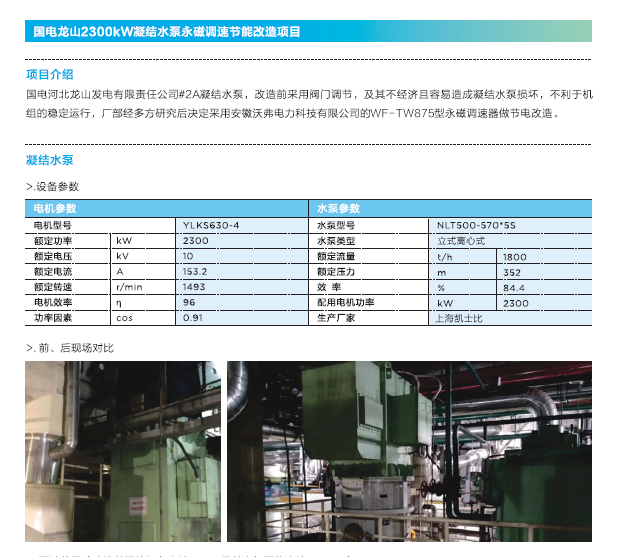 首页 > 项目报告 > 国电河北龙山发电有限公司(2300kW凝结水泵)节能改造