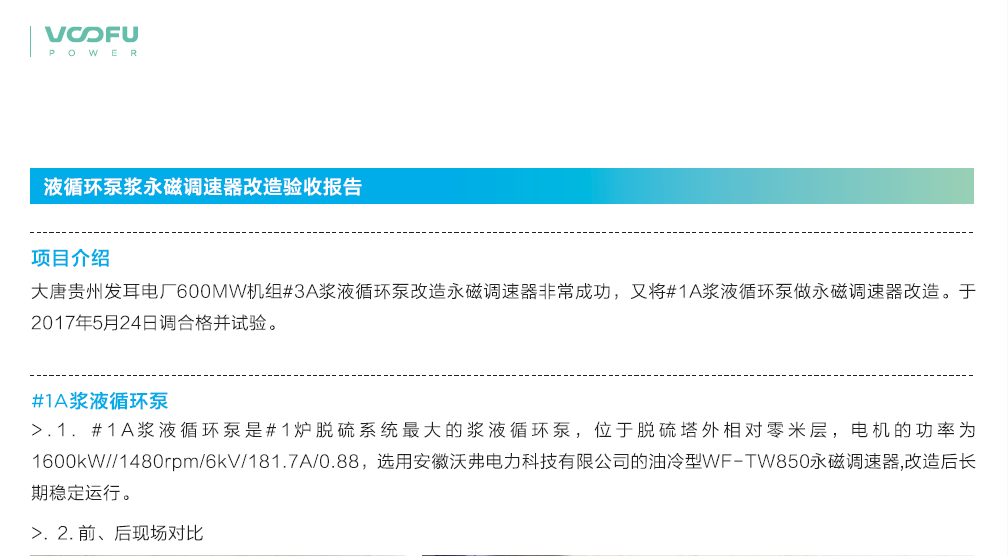 国电霍州电厂(浆液循环泵)永磁调速器使用报告